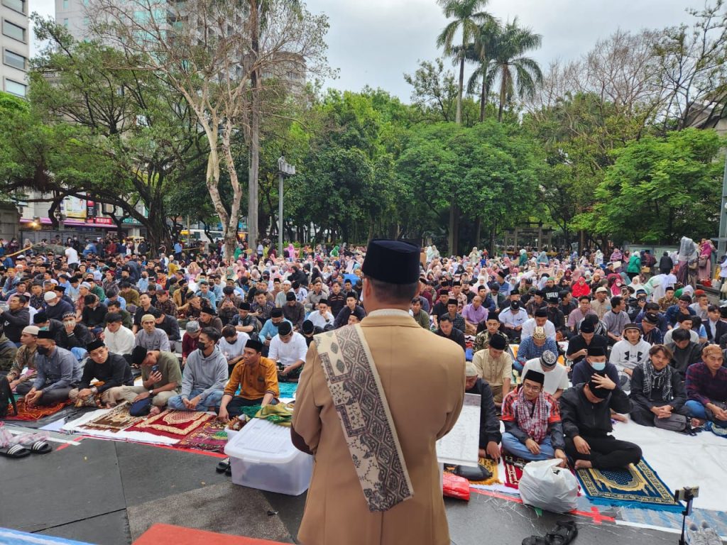 Taiwan (jagatnu.com) — Program Dakwah NU Mendunia, safari dakwah Ramadan 1445 H / 2024 M Lembaga Dakwah PBNU, Lazisnu PBNU bekerjasama dengan PCINU Taiwan gelar sholat Idulfitri di Halaman National Taiwan Museum, Rabu (10/3/24). Sebanyak 18.000 WNI yang berada di Taiwan tampak antusias memadati sholat idulfitri 1445 H/2024 M.