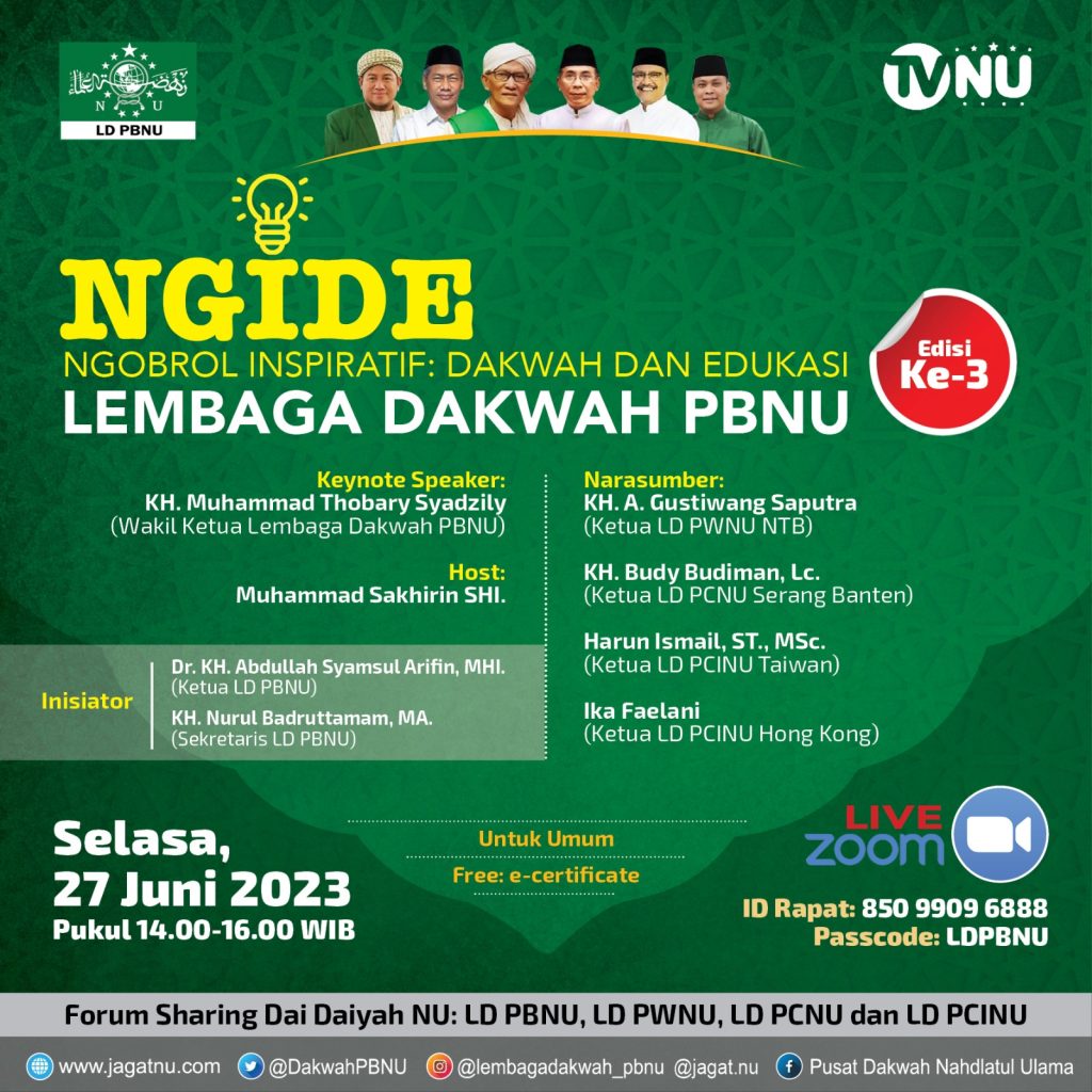 Jakarta, Selasa, 08 Agustus 2023 – Lembaga Dakwah PBNU (LD PBNU) Kembali gelar kegiatan NGIDE – Ngobrol Inspiratif Dakwah dan Edukasi edisi ke-5 yang mengusung tema “Konten Dakwah Kreatif: Banjiri Edukasi di Media Sosial”. Acara ini digelar secara virtual pada Selasa (08/08/2023). Wakil Sekretaris Lembaga Dakwah PBNU KH. Ahmad Nurul Huda Haem yang akrab dipanggil […]